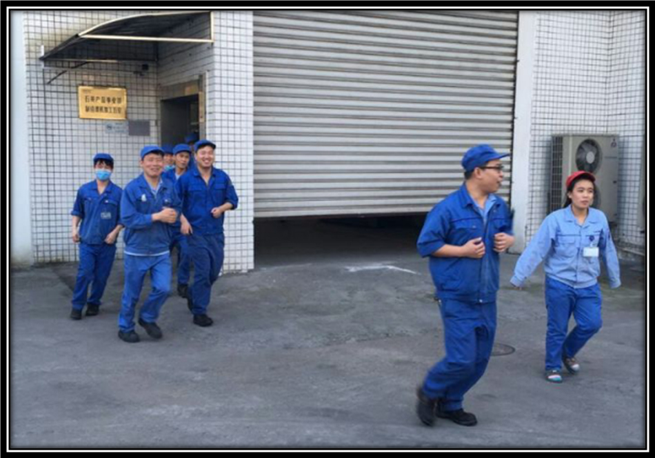 一工廠公共部門參演人員快速撤離至緊急集合點(diǎn)